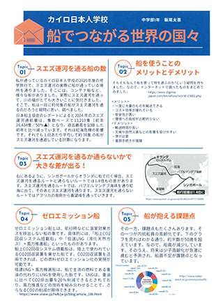 | 横浜の歴史と海運業の今とこれから | 豊島区立駒込中学校 1年 中島 佑人 |