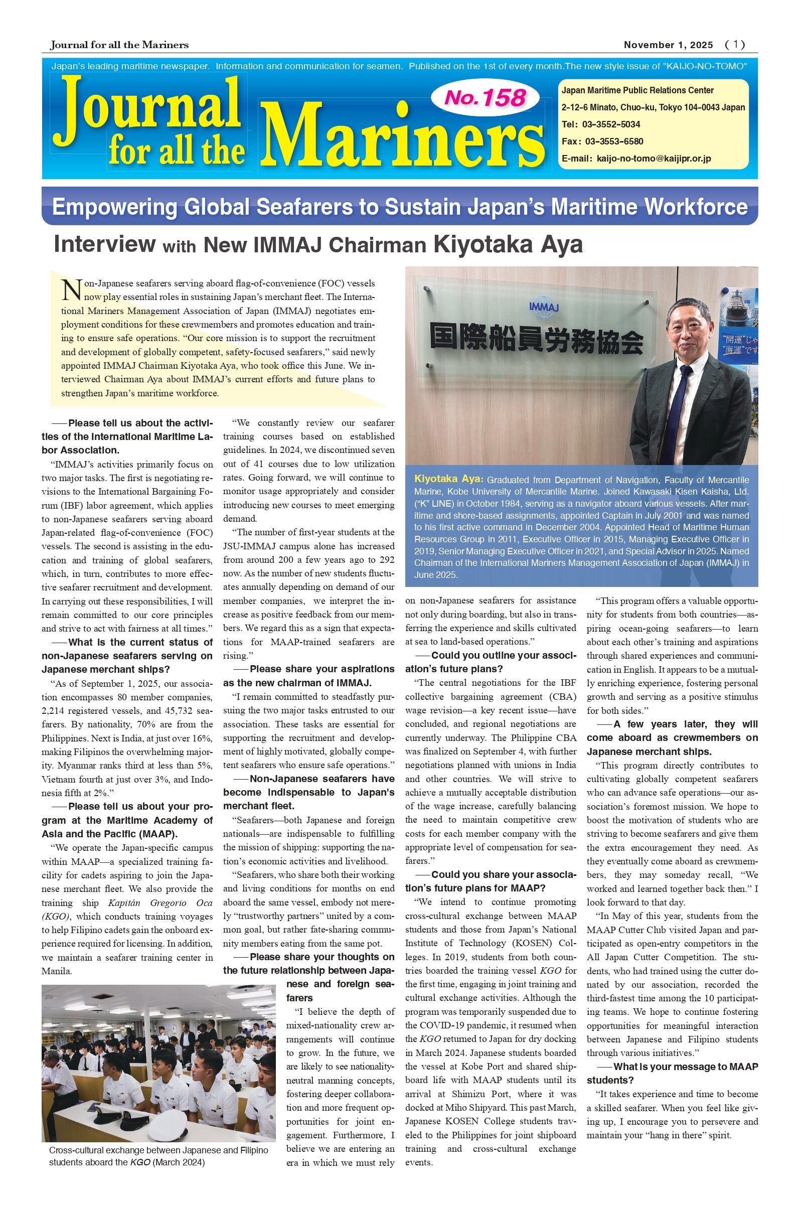 Journal for all the Mariners 2025年11月1日号(No.158)が発行